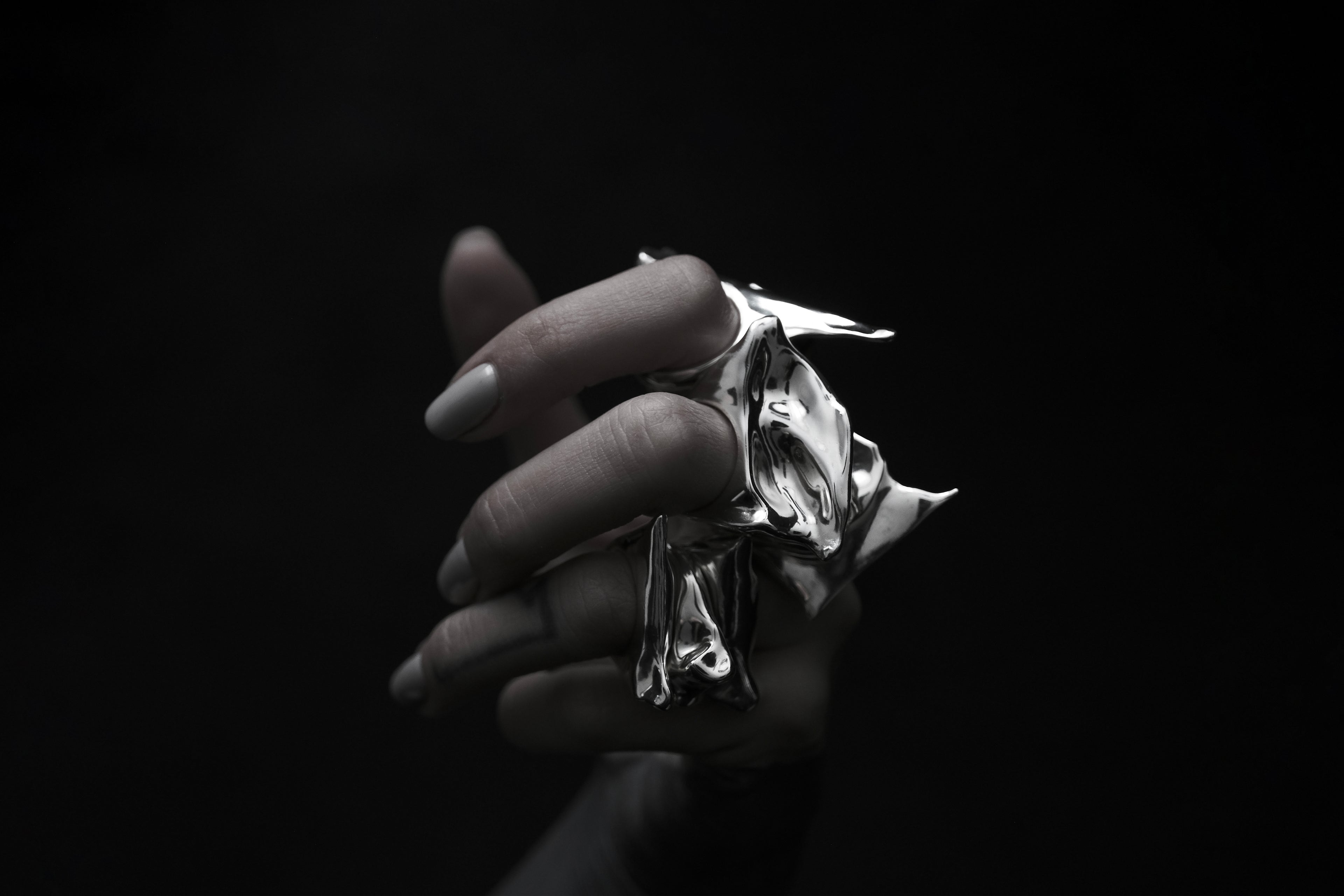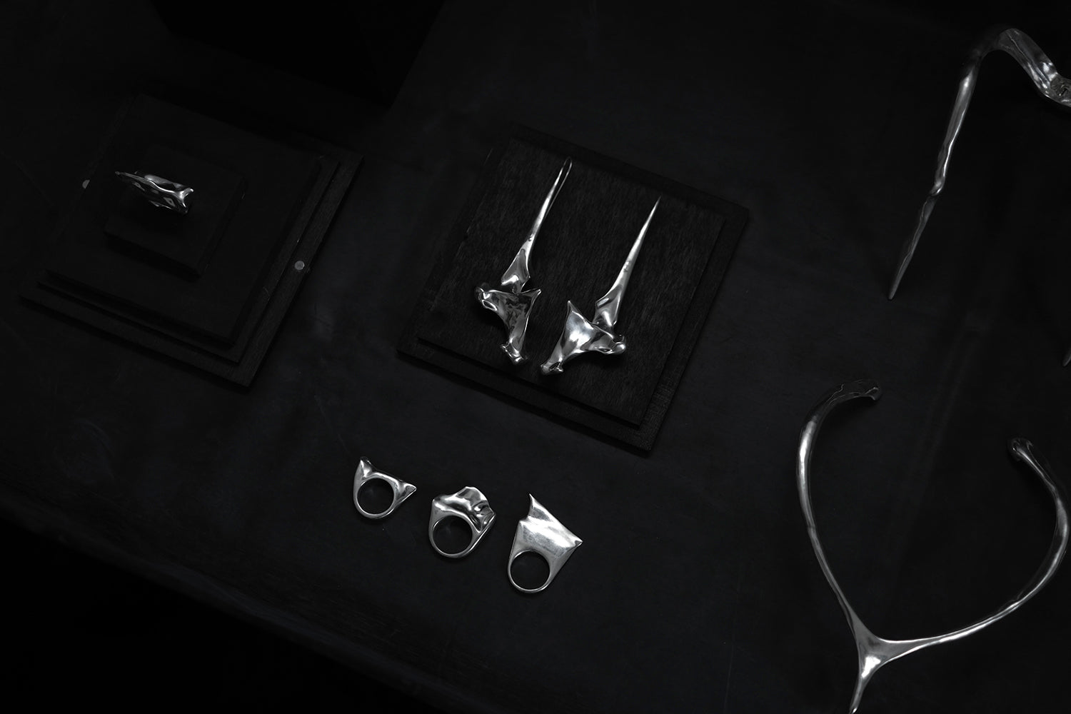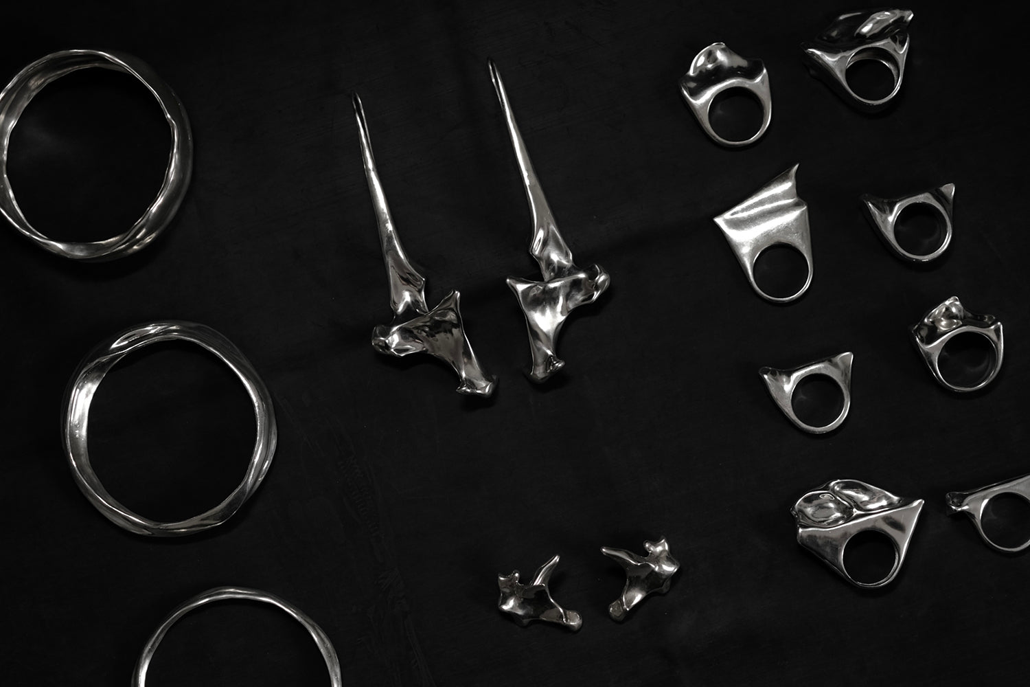 The Aves collection is a silver jewelry collection based on comparative bird anatomy; it preserves the original form of the bones and transposes them onto corresponding places on the human body.
