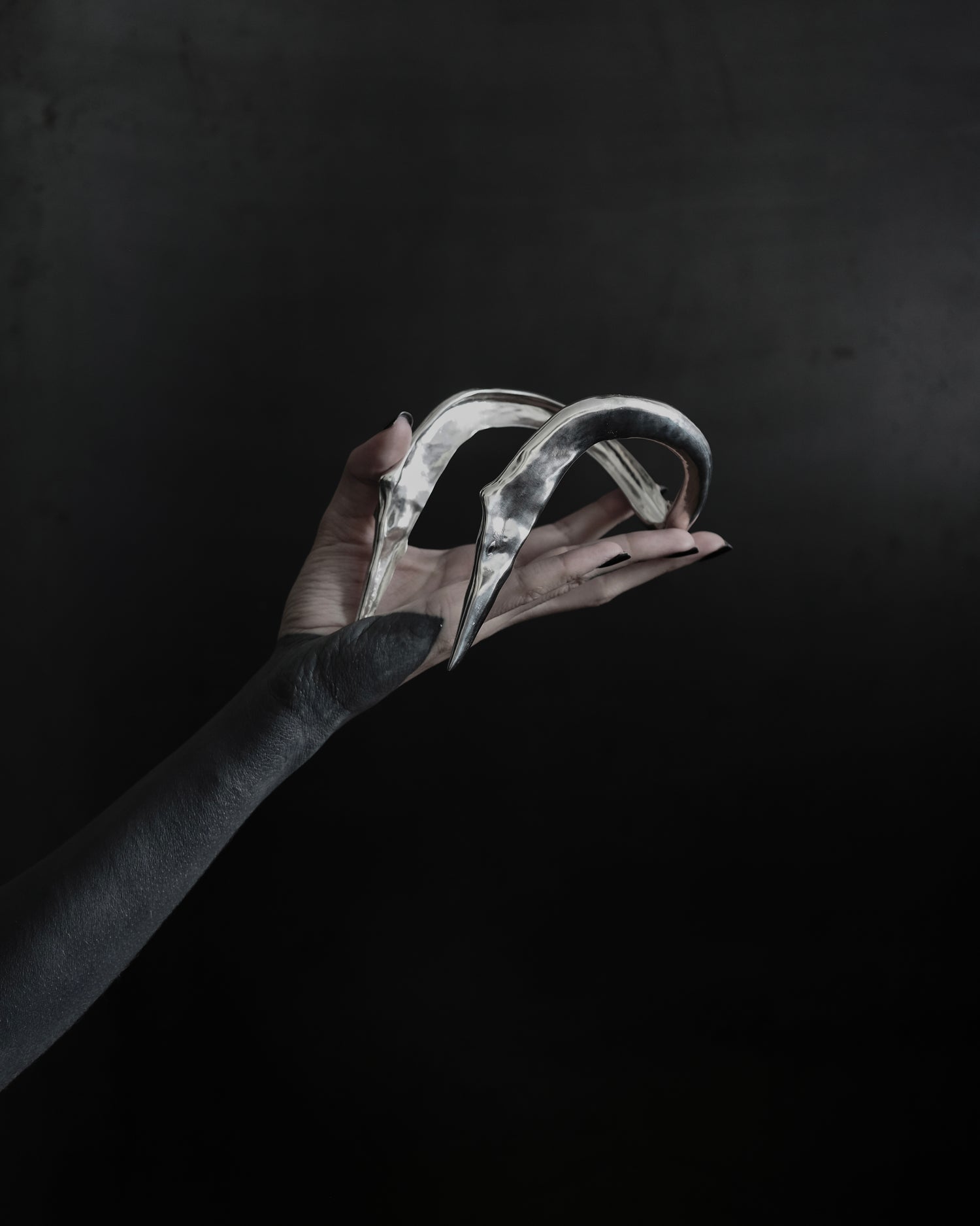 Aves is a sterling silver jewelry collection about birds and the specific bones used to adapt it onto the human body.