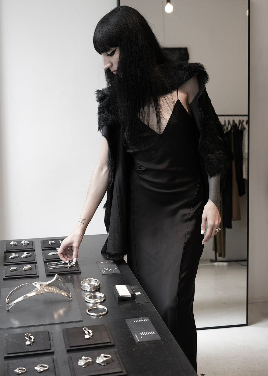 She taught herself jewelry making over the course of a year, experimenting with various materials and techniques to develop her own approach. This self-taught process allowed her to shape a personal vision that combines craftsmanship with artistic expression, ultimately leading to the launch of her first jewelry collection in 2025.